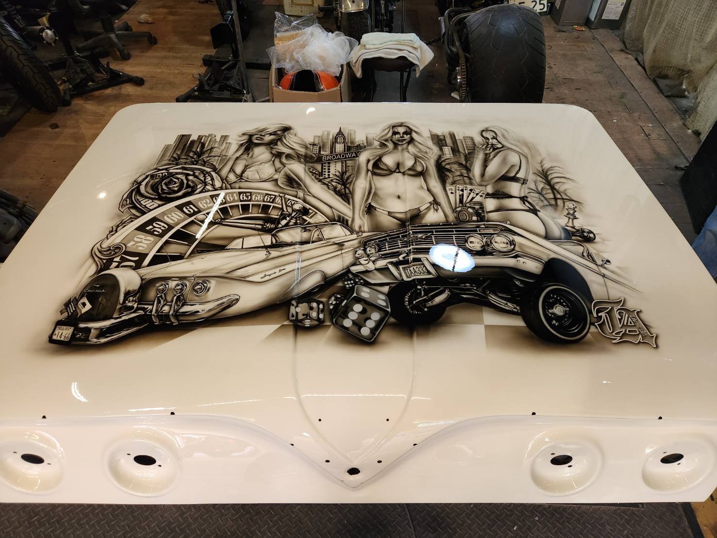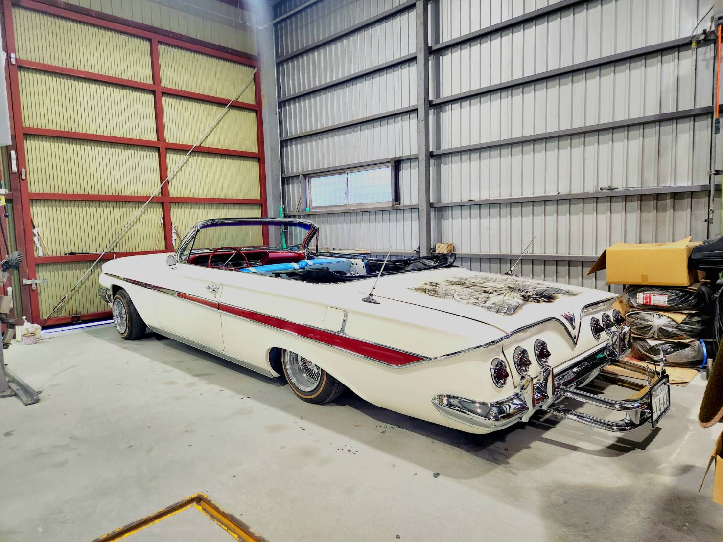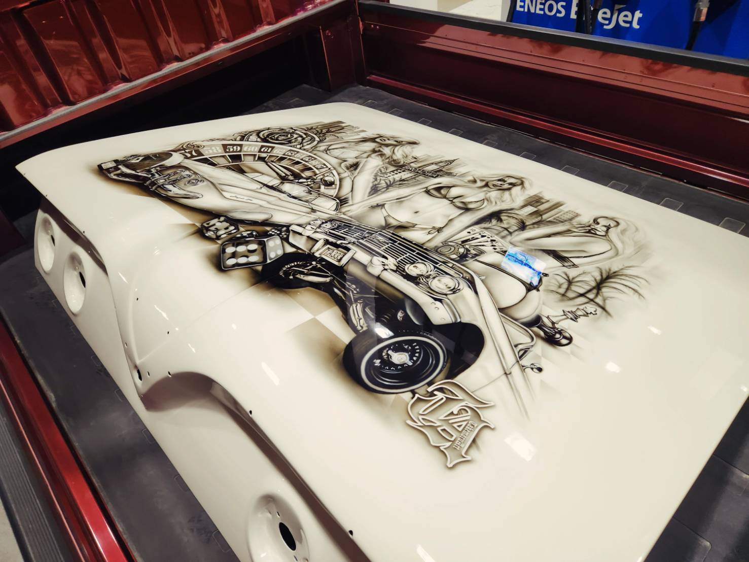 シボレーインパラにエアスプレーでイラストを描いてもらいました! フリーハンドとは思えないクオリティの高さです。